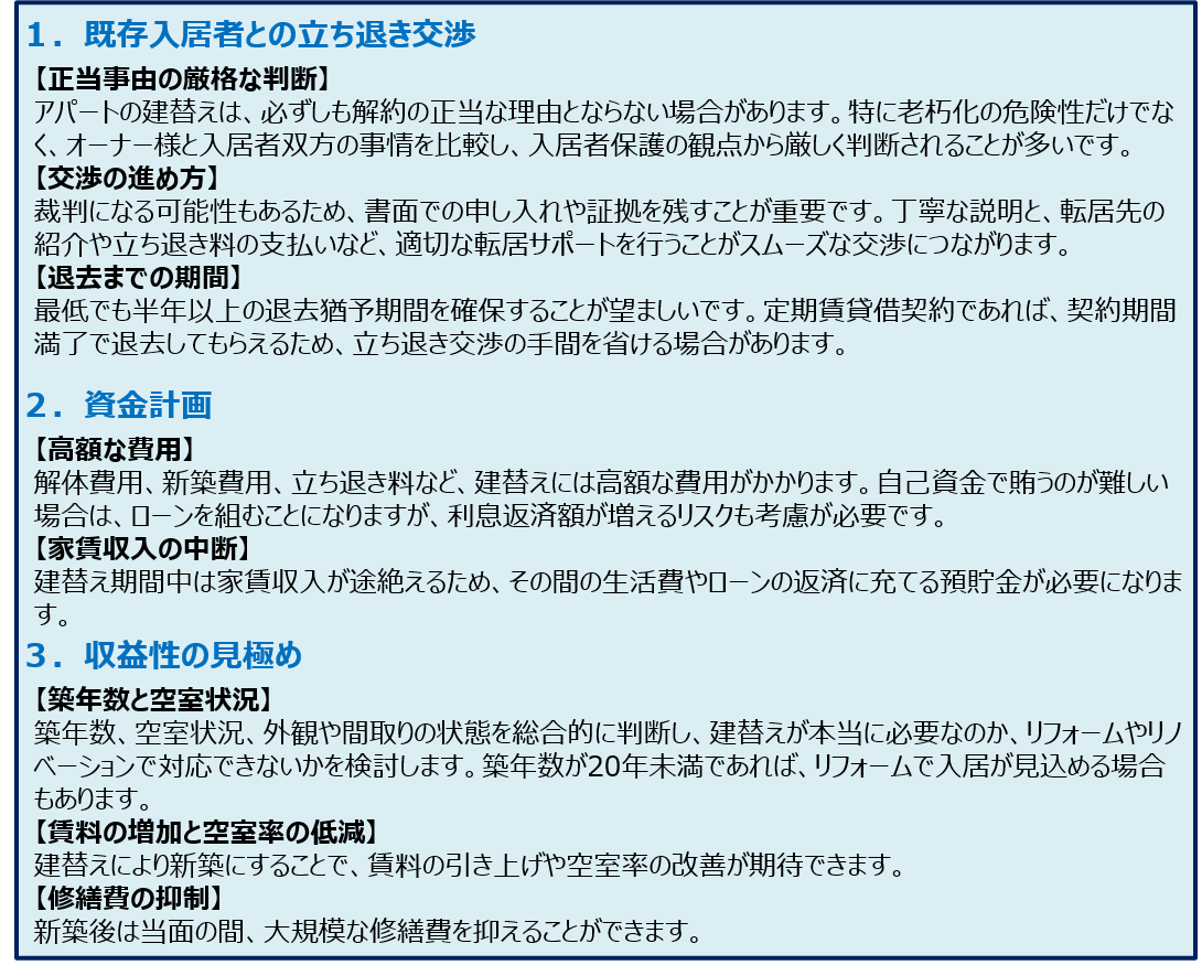 今回は、今後資産の組み換えとして、既存物件の建替えを検討する際の注意点についてお伝えしていきます。
